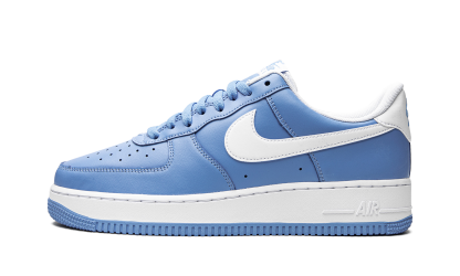 The Nike Air Force 1 Low “University Blue” is a colorway of the retro basketball shoe that looks to the popular “UNC” theme that originated on the Air Jordan 1 in 1985 for design inspiration. A Fall 2021 release by Nike, the “University Blue” is reminiscent of the brand’s late ‘90s and early 2000s Air Force 1 and Dunk colorways that also appeared in “University Blue” or “Powder Blue.” Here, the entire upper, including the perforated toe, mid-panel, collar, and heel, appear in University Blue-colored leather. A crisp white leather Swoosh contrasts the look. Additional white leather can be found on the heel tab that features embroidered “Nike Air” and Swoosh branding in University Blue. Additional “Nike Air” detailing is printed in light blue on the white nylon tongue tag on the white nylon tongue. A white rubber sole completes the design. UNC