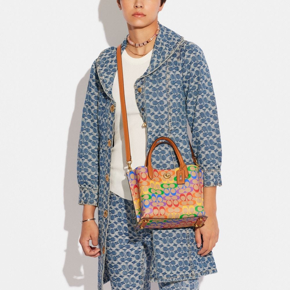 Detachable strap with 21 1/2" drop for shoulder or crossbody wear