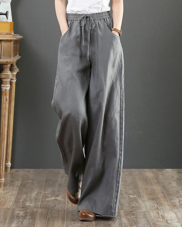 Casual Wide Leg Cotton and Linen Loose Pants