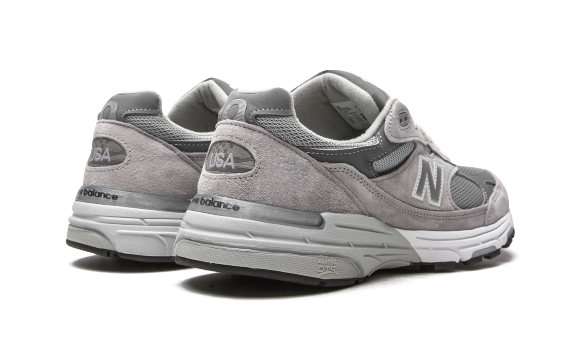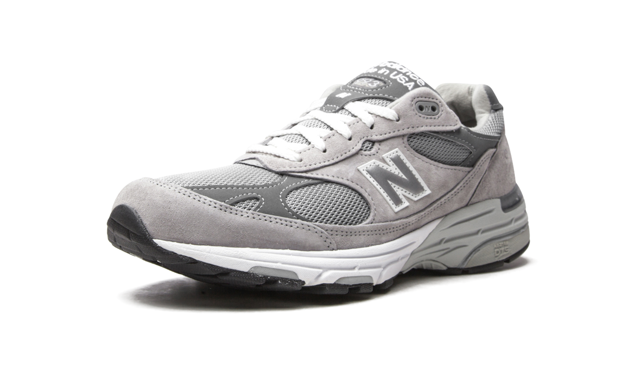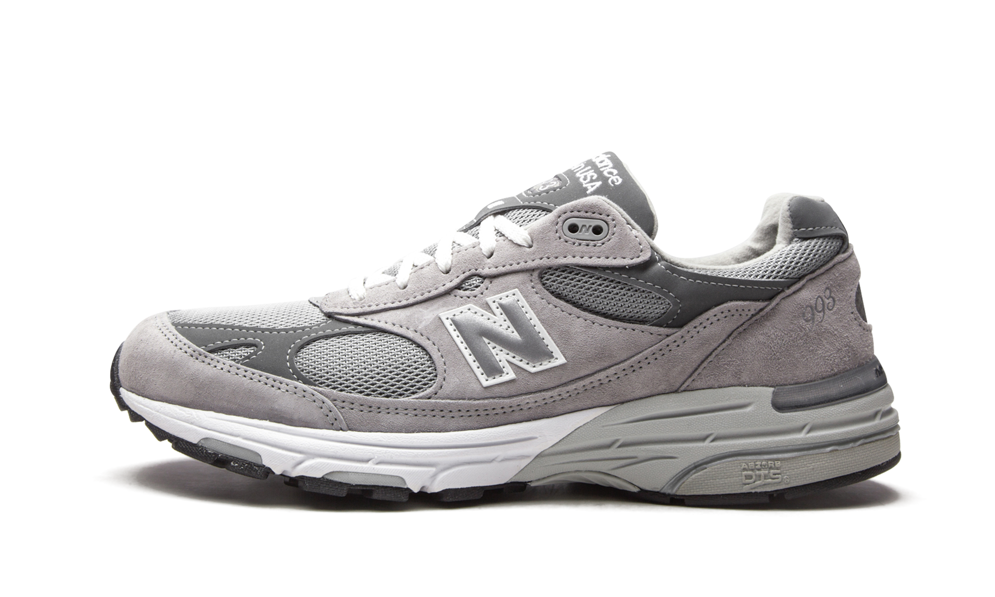 The New Balance 993 “Grey” is a premium lifestyle shoe by the New England based heritage footwear company. A popular option in New Balance’s 990 line, the 993 combines elevated craftsmanship with top-tier comfort. As its nickname suggests, the “Grey” is a neutral based look that displays a grey mesh base. Supple tonal suede overlays appear on the toe cap, eyelets, mid-panel, and heel. Dark grey leather detailing on the toe and collar provide a low-contrast look. A silver reflective “N” logo with a contrasting white trim can be found on both sides of the upper and a “USA” branding window on the heel denotes the origins of the shoe’s manufacturing. White “New Balance Made in USA” embroidery is stitched onto the tongue above the “993” insignia. The chunky grey midsole features New Balance’s responsive ABZORB cushioning for superior comfort.