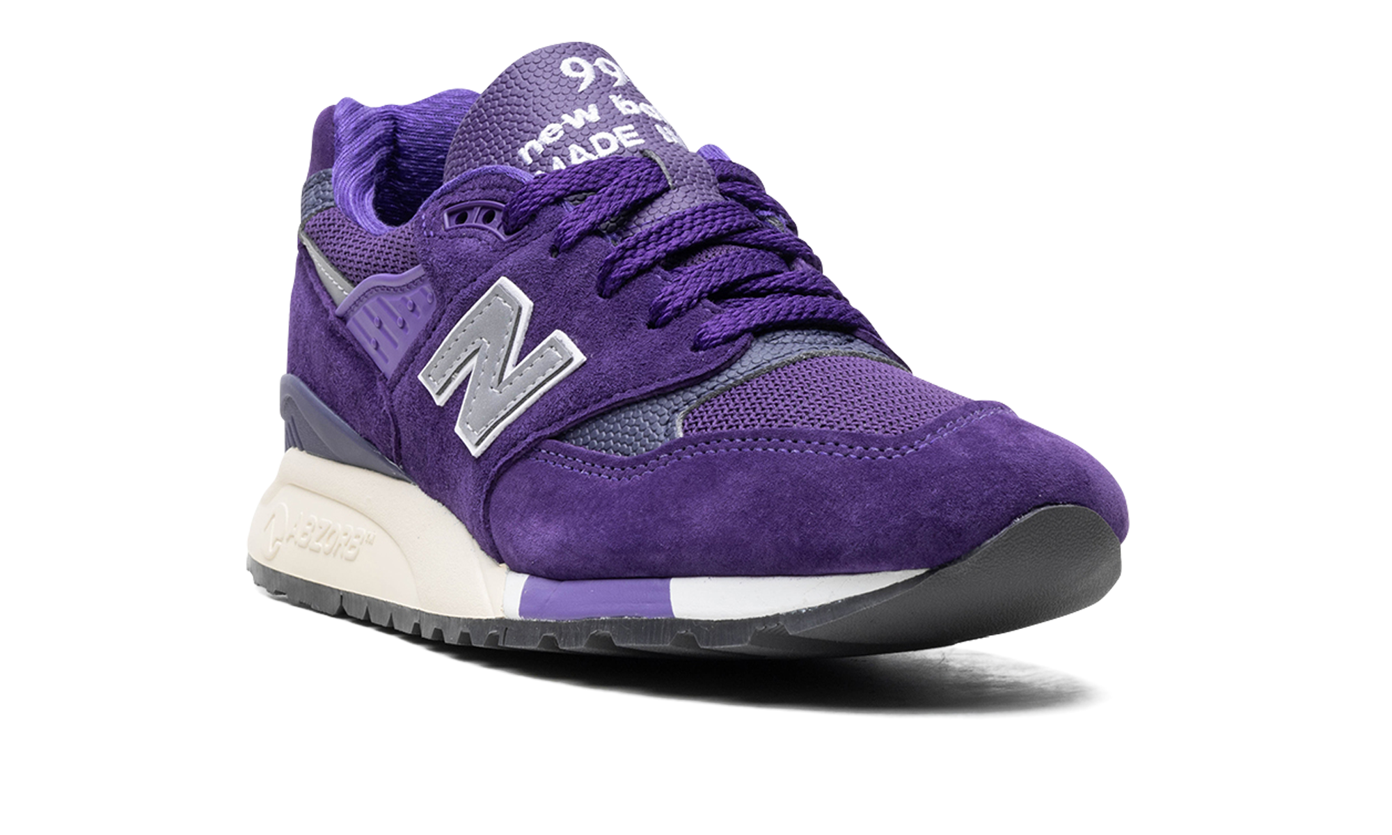 The New Balance 998 "Made In USA - Purple" is a head-turning, purple suede colorway of the retro running shoe from Teddy Santis’s “Made in USA” collection with New Balance. The 998 joined the brand’s “Made in USA” line in 2023 under Teddy Santis’s guidance. Here, the “Purple” colorway features a purple mesh construction with tonal suede and leather overlays throughout. A grey “N” logo appears on each side. “New Balance 998 Made in USA” branding is embroidered on the purple suede tongue. The midsole features ABZORB cushioning for all-day comfort. Release date: June 29, 2023