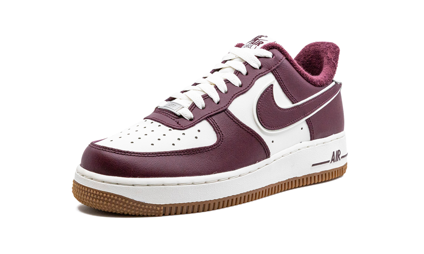 The Nike Air Force 1 Low “College Pack - Night Maroon” is a colorway of the retro basketball sneaker with a classic, university-inspired look. The “Night Maroon” features a white leather base with contrasting Night Maroon leather overlays and raised Swoosh branding. A maroon “Nike Air” logo is embroidered on the white leather heel overlay. Additional “Nike Air” branding is found on the tongue tag. The shoe is complete with a white rubber midsole and gum outsole. College Pack - Night Maroon