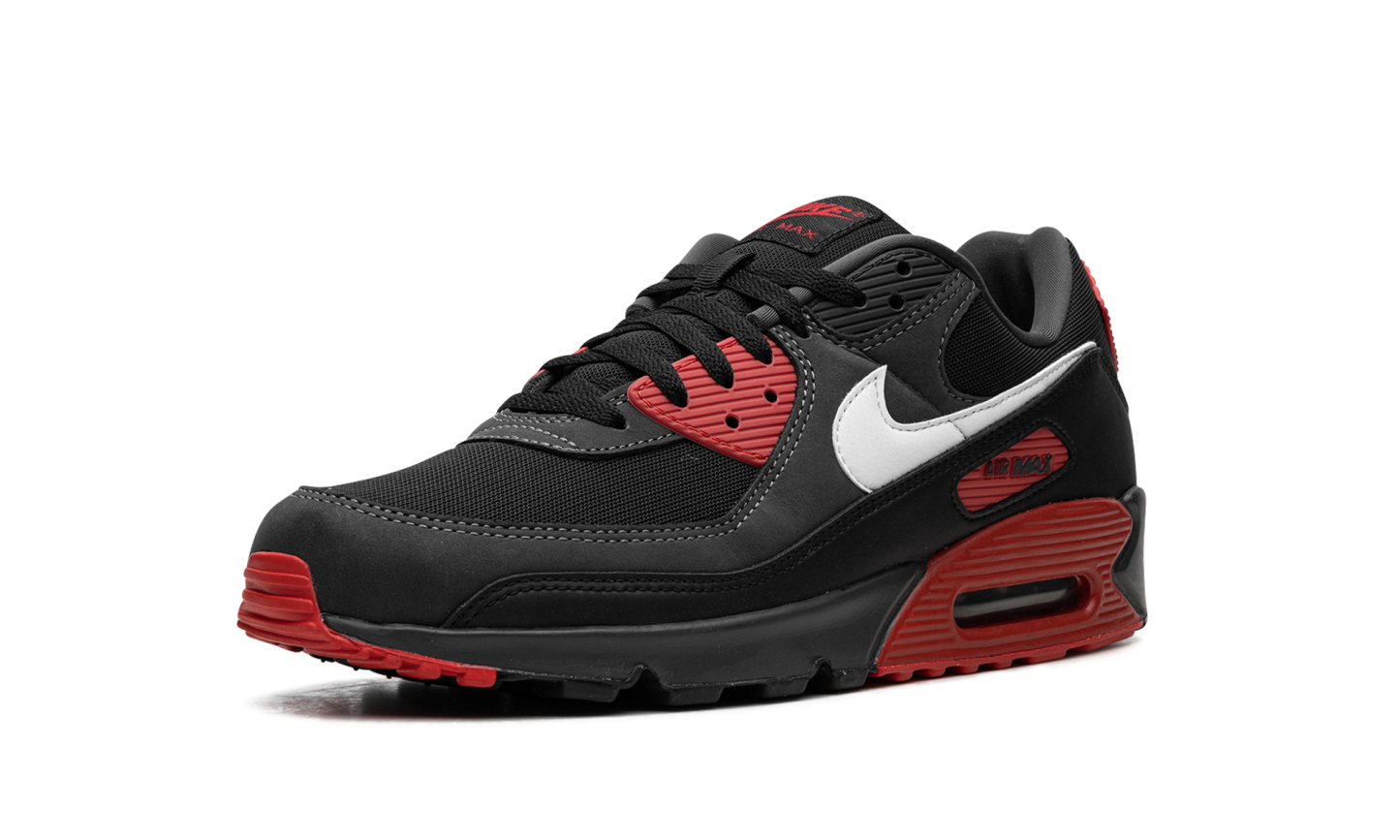 The Nike Air Max 90 "Black/Red" is a colorway of the retro running shoe with fiery red accents. Debuted as the Nike Air Max 3 back in 1990 before changing to the Air Max 90, the retro sneaker is one of the most beloved in all of Nike’s footwear catalog. The “Black/Red” colorway features a black textile base paired with a tonal nubuck mid-panel and mudguard. A white leather Swoosh is seen on both sides of the shoe and a red “Air Max” branding window is found on the lateral side of the mudguard. Additional branding elements include “Nike Air” detailing on the heel and “Nike” logo imagery on the tongue. A visible Air cushioning unit is located within the red-colored panel on the midsole. Release date: September 25, 2023 Black / Red