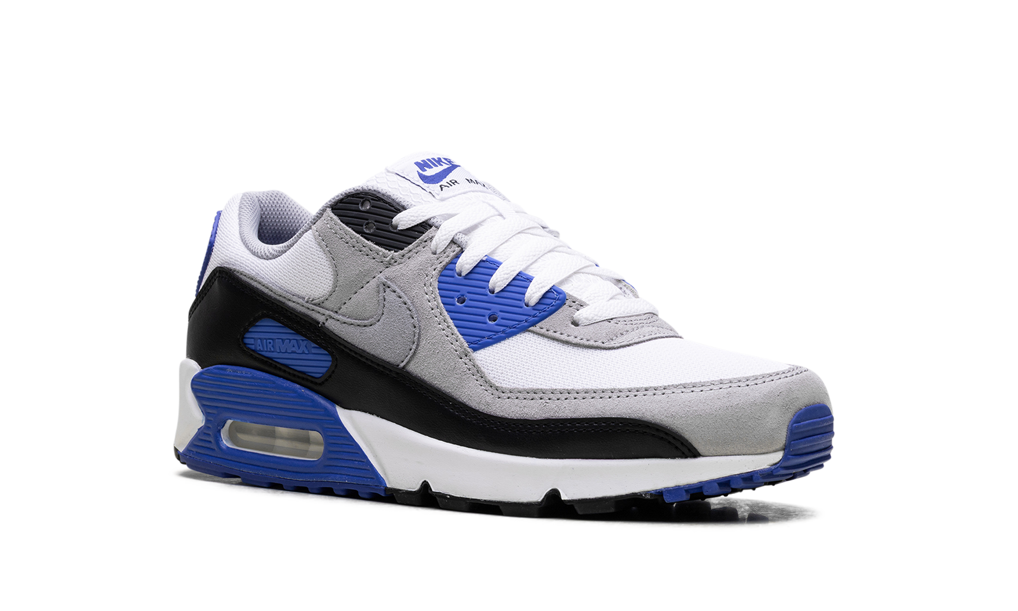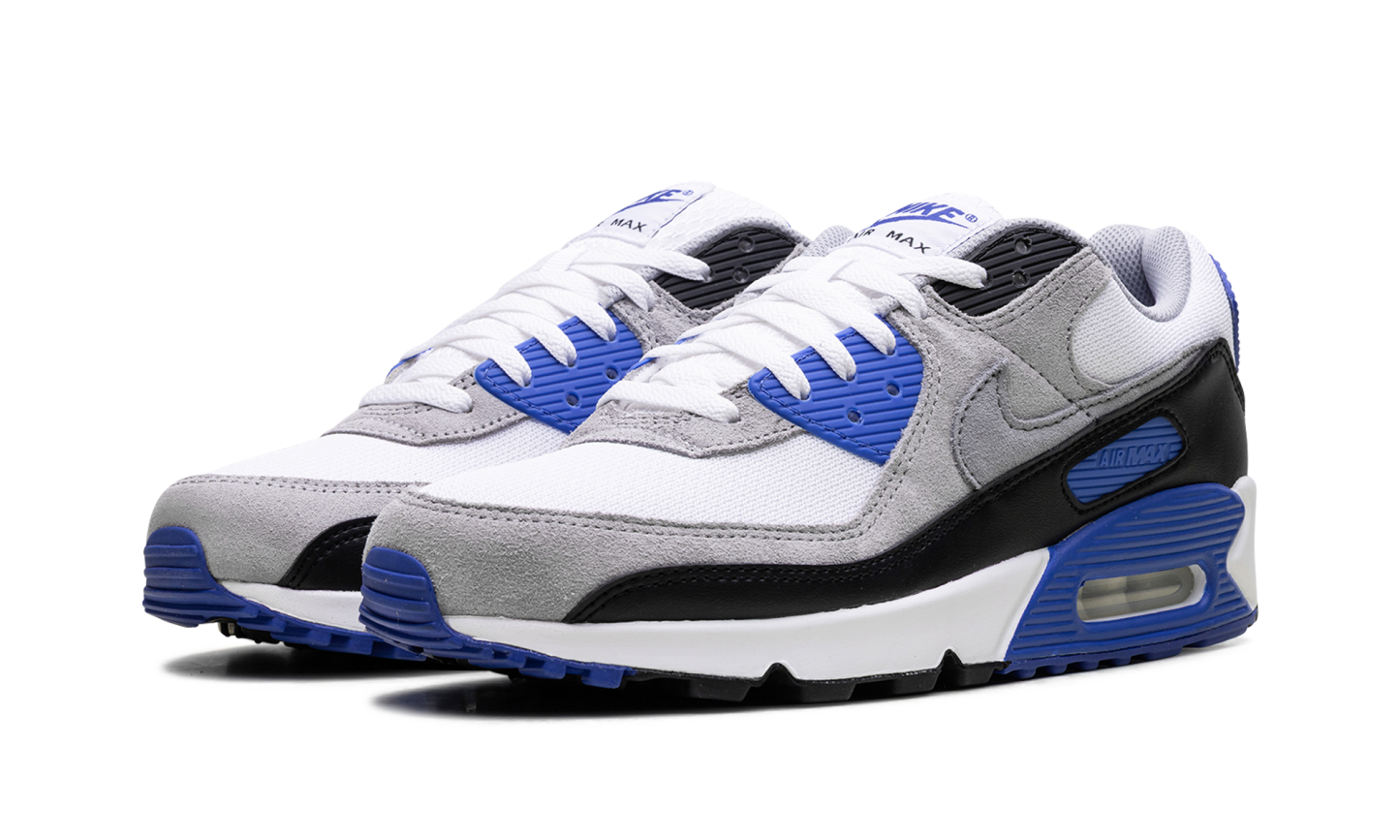 The Nike Air Max 90 "Hyper Royal" takes the legendary early '90s silhouette and injects it with a striking, electric blue energy. This version combines a clean, neutral base with vibrant color pops, delivering a classic sneaker with undeniable street appeal. Hyper Royal