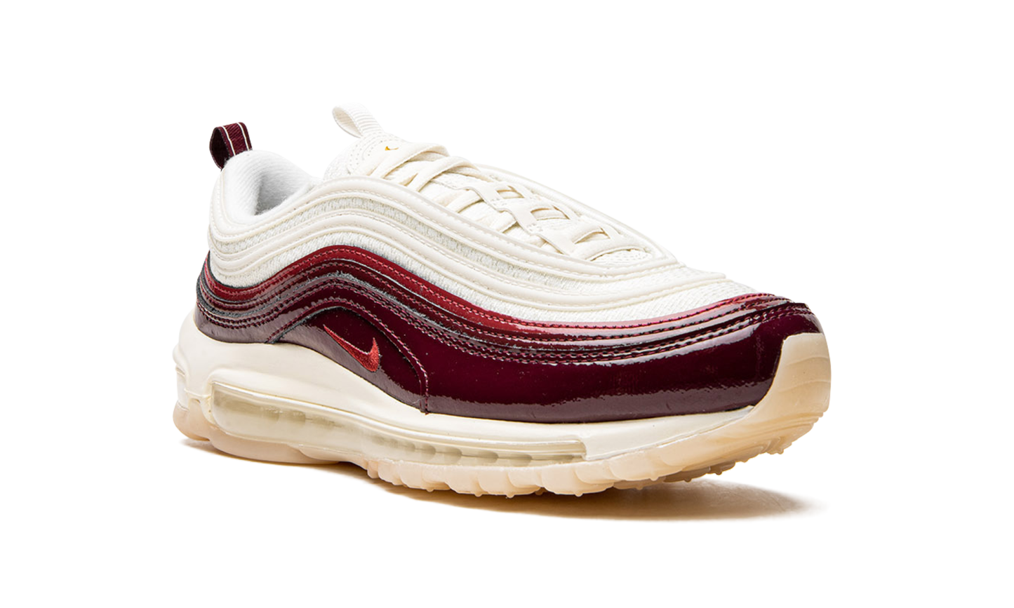 The Women’s Nike Air Max 97 “Dark Beetroot” is a women’s-exclusive colorway of the vintage running shoe designed with versatility in mind. The lifestyle-focused “Dark Beetroot” Air Max 97 for women features a Sail-colored mesh base with tonal leather panels. The mudguard is designed in Dark Beetroot-colored patent leather. A maroon patent leather wavy panel separates the cream overlays and dark red mudguard. Dark Beetroot embroidered Swoosh branding is found on either side of the shoe above the Sail foam midsole. A full-length Max Air cushioning unit under the midsole provides all-day comfort. Dark Beetroot
