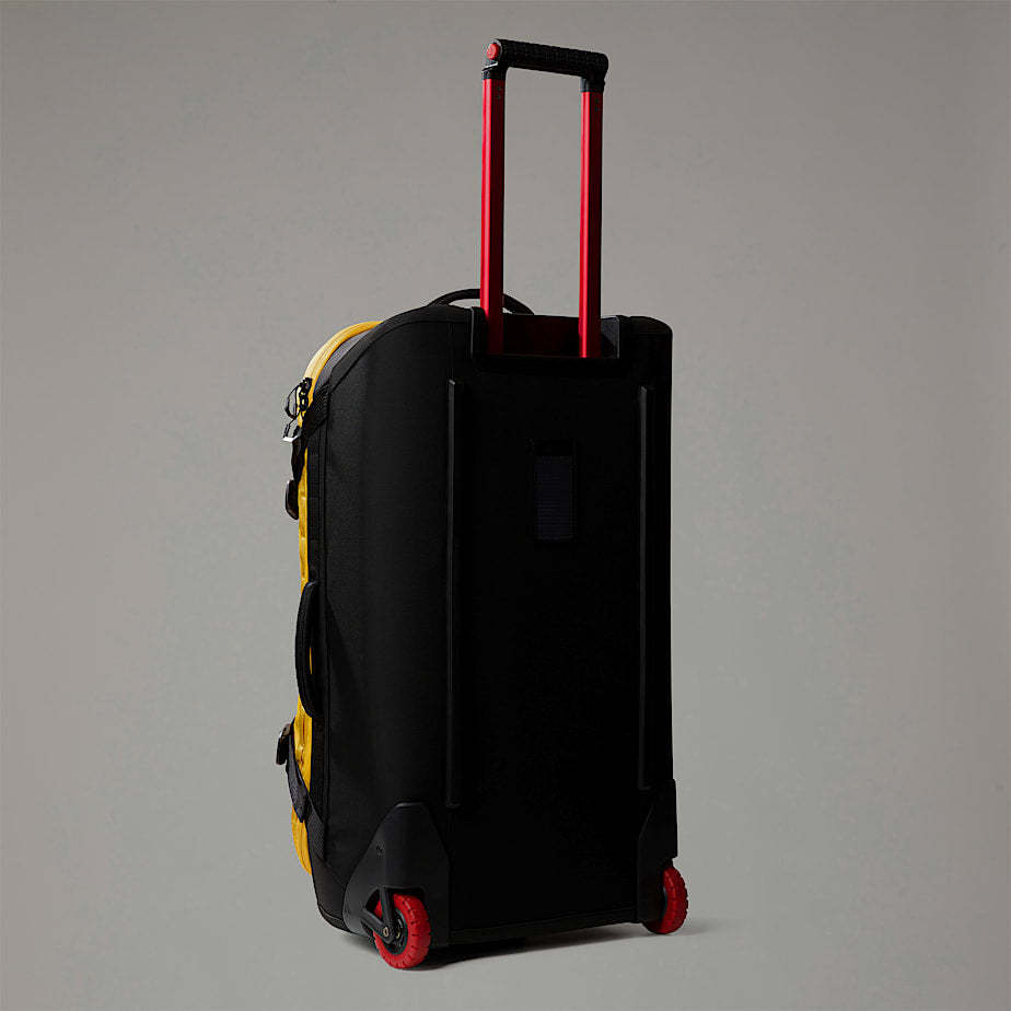 - Super-tough and versatile, the Base Camp Rolling Thunder 28" blends both mountain durability and high-level organisation for frequent flying or weekend adventures. Its 95-litre volume is roomy enough for the average two-week holiday or a gear-loaded weekend adventure. And being made from ultra-durable recycled Base Camp fabric with an improved hard-shell chassis designed to handle travelling around the world over and over again, it stands up to long-term, rugged use – just like its predecessor. The custom-moulded wheels make light work of rolling, even on gravelly terrain. Webbing compression straps let you secure belongings or compress the bag when it's not full. And padded side and top handles are super-comfortable and allow for multiple carrying positions. There are tonnes of pockets for travel essentials and dirty clothes, as well as webbing points that allow you to clip on additional items. If you need to save space, you can push down clothing using the internal compression panel. Plus, to keep valuables safe, the zip is lockable, giving you peace of mind when your main focus is the end destination.