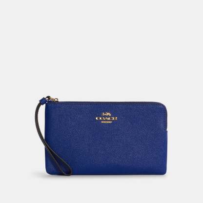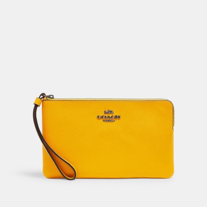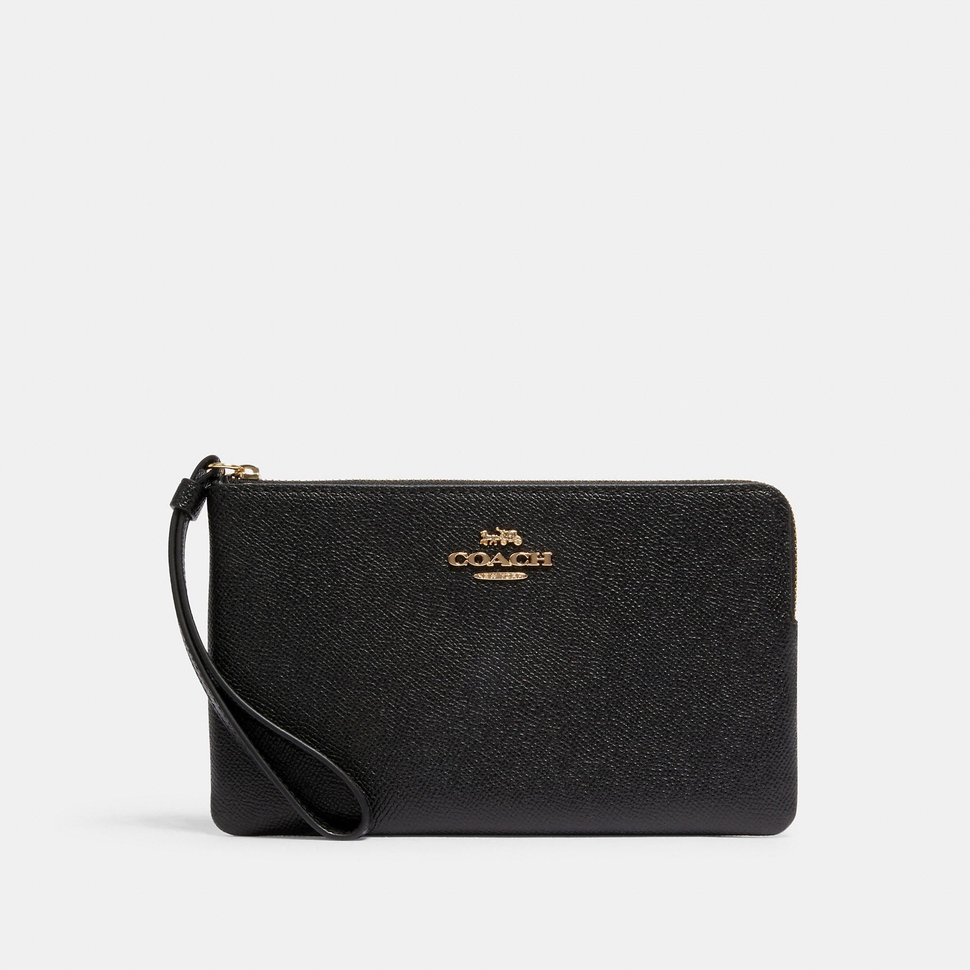 Crossgrain leather Two credit card slots Zip closure fabric lining Wrist strap attached 7 3/4 (L) x 4 3/4 (H) x 1/2 (W) Style No. 3888