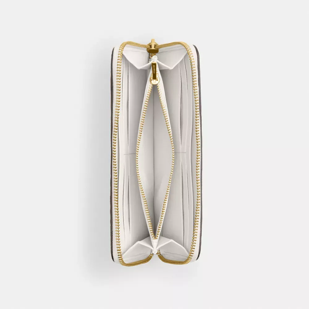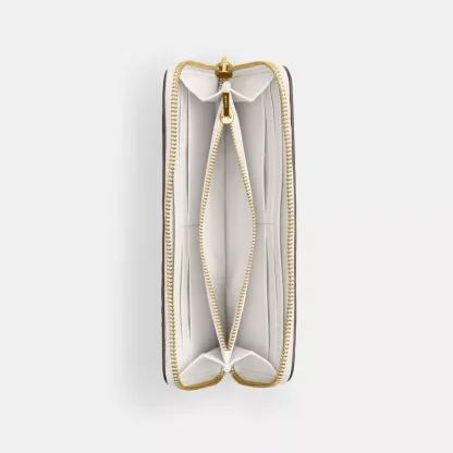 Crafted of polished pebble leather featuring a cheerful cherry print detailed with glittery accents for a touch of sparkle, this comprehensive slim wallet keeps cards, ID, coins, bills and receipts neatly organized in a secure zip-around design. It’s finished with an outside slip pocket for easy access to essentials.
