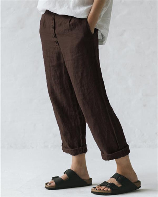 Linen Solid Women Causal Plus Size Daily Ourdoor Pants