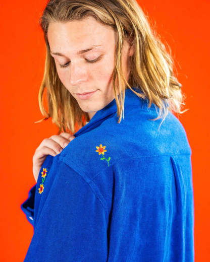 - Terry Towel Cotton Long Sleeve Button-Up Shirt